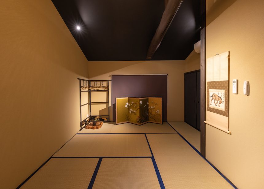 - 吹き抜け天井には大きな梁があり、京町家の歴史を感じていただけます。