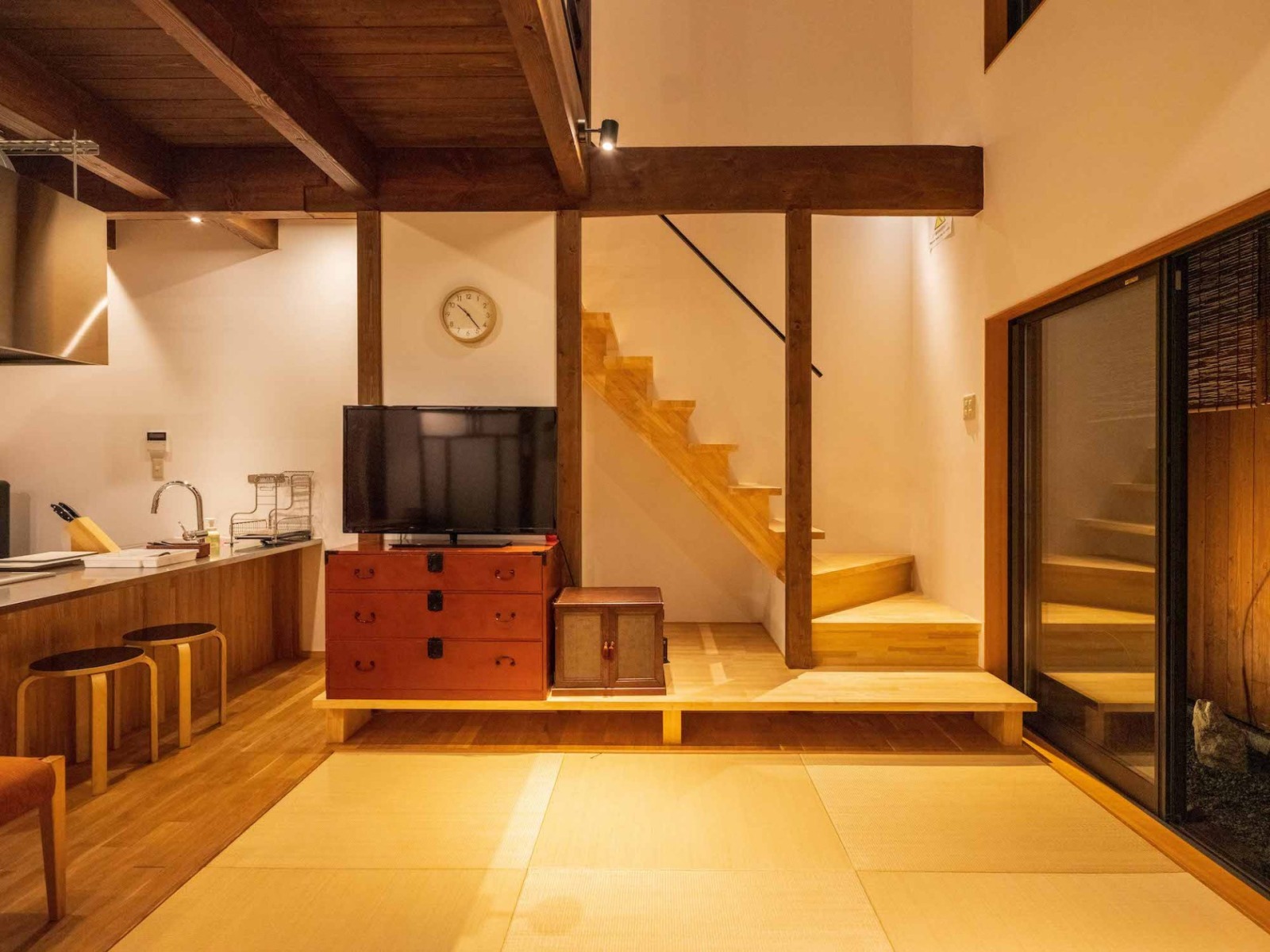 - お庭を眺めることができる畳敷きのリビングで、ゆったりとおくつろぎいただけます。